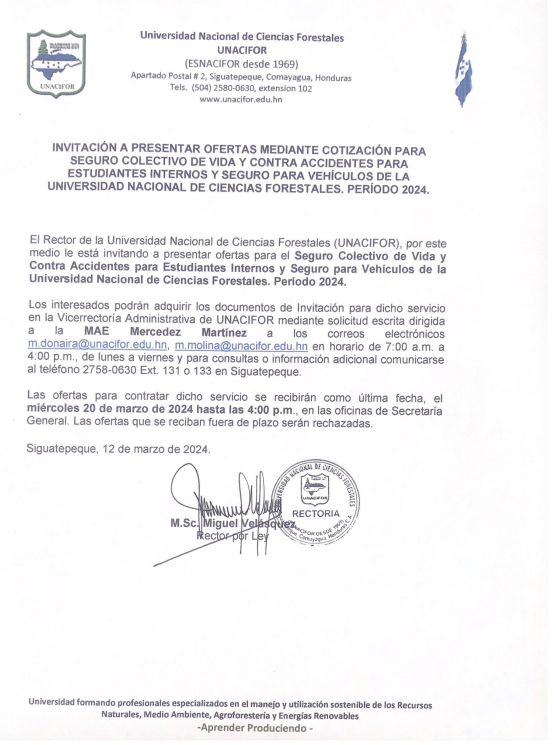 AVISO DE INVITACIÓN A COTIZACIÓN DE SEGURO COLECTIVO Y DE VEHÍCULOS. Deja un comentario / Comercial / Por unacifor