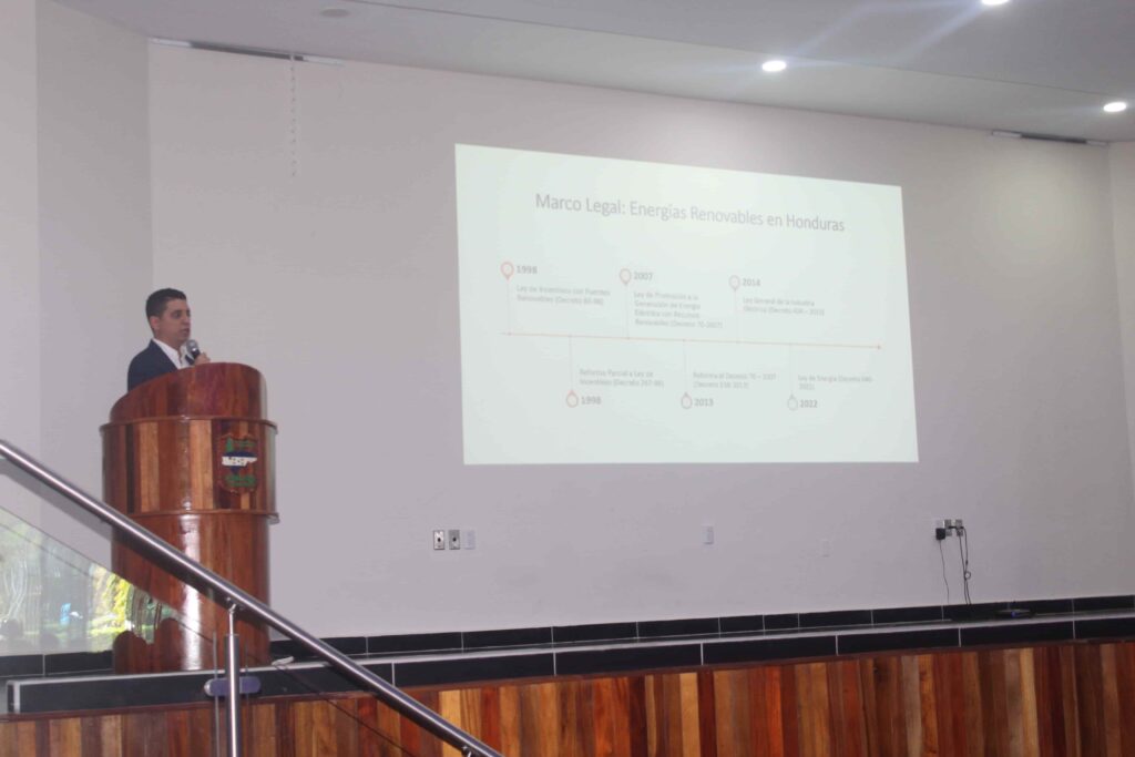 En el evento se contó con la destacada participación de un especialista en políticas y legislación energética, Kevin Rodríguez. Durante la jornada, se abordaron dos temas de alta relevancia para el contexto energético nacional: Transición Energética y Políticas Públicas y Marco Regulatorio para Energías Renovables en Honduras.