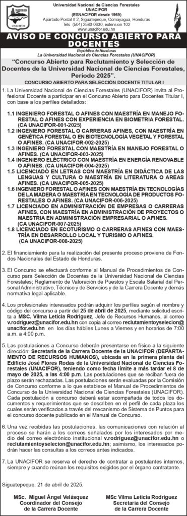 LICITACIÓN CONCURSO ABIERTO PARA DOCENTES Deja un comentario / Comercial, Sin categoría / Por unacifor 24 de abril del 2025