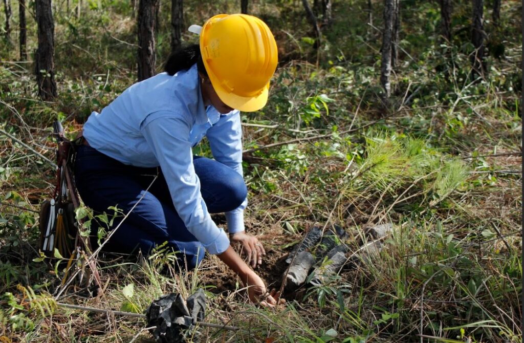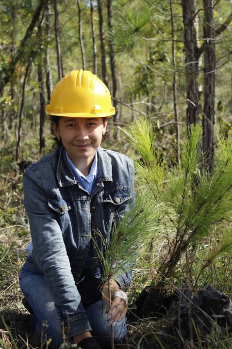 Técnico Universitario en una Jornada de plantación forestal, en bosque de la Universitario de la