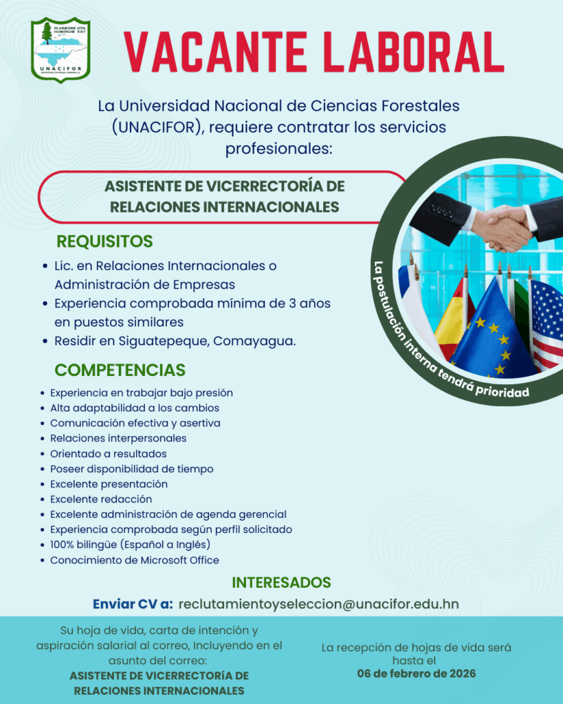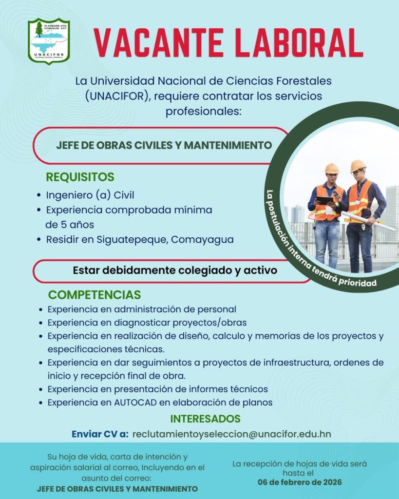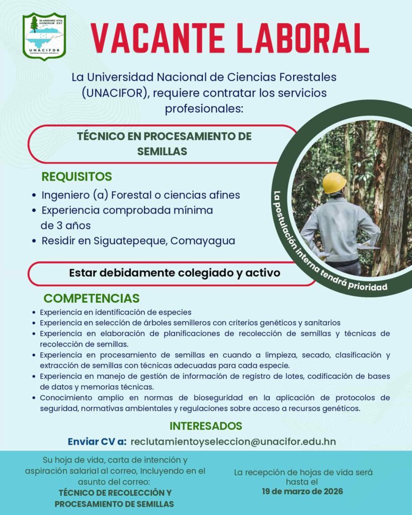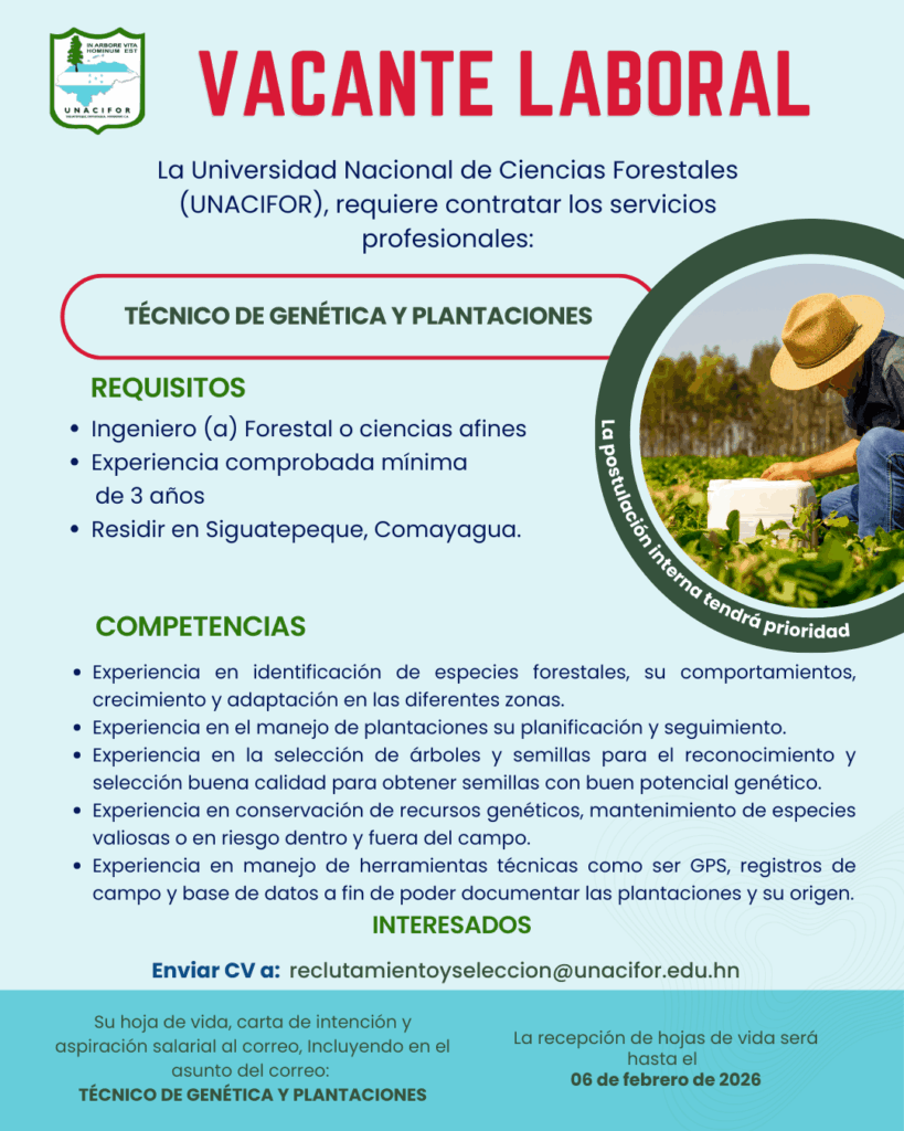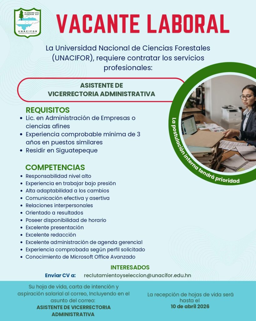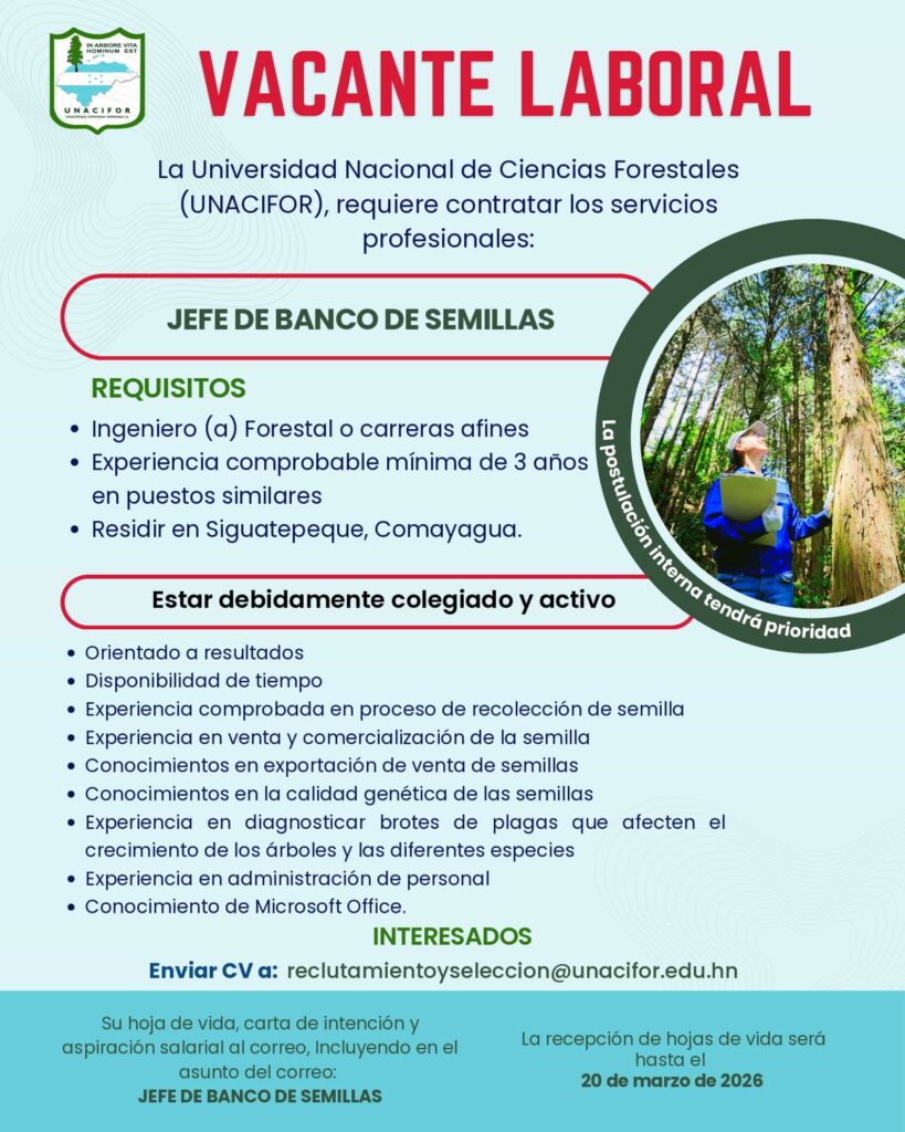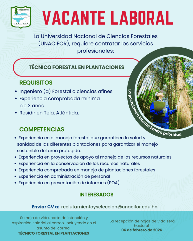 Estefany Bonilla 20 de junio de 2025 a las 9:46 PM Buenas Tardes puede enviar su hoja de vida al correo de recursos humanos Ya que son ellos los que reciben las hojas de vida, reclutamientoyseleccion@unacifor.edu.hn Responder