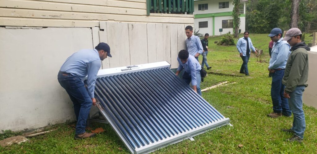 Como parte de la asignatura de Energía Solar, los estudiantes llevaron a cabo la instalación de dos sistemas de calentadores solares térmicos tipo termosifón (tubos de vacío) en la cabaña Orquídeas.