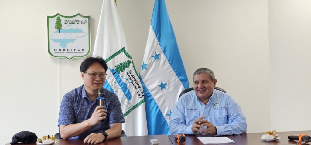 La UNACIFOR recibió representantes del Instituto de Promoción Forestal Coreano conocido por sus siglas en inglés como (KOFPI), en una jornada que incluyó una visita de cortesía al Rector, Emilio Esbeih y una trascendental conferencia sobre el mercado de carbono forestal y REDD+.