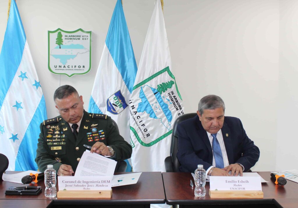 La Universidad Nacional de Ciencias Forestales (UNACIFOR) y la Universidad de Defensa de Honduras (UDH) firmaron un convenio de cooperación académica.