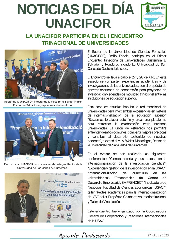 10 de julio del 2023 Más de 38 hectáreas de bosque de Pinos Oocarpa reforestan los estudiantes del II año de Técnico Universitario en una Jornada de plantación forestal, en bosque de la Universitario de la UNACIFOR. Las plantaciones se realizan en el marco de la Pasantía de Plantaciones forestales y tienen una duración de