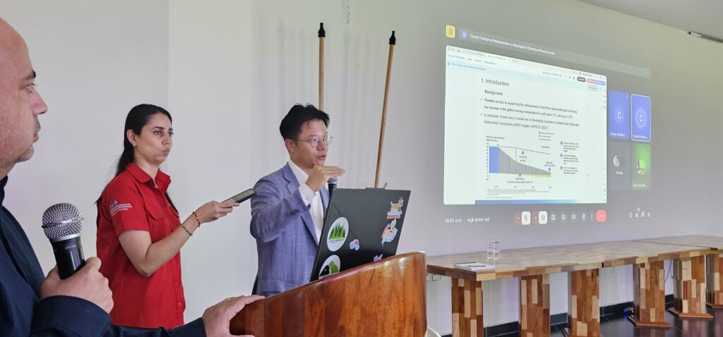 Siguatepeque, Comayagua – 16 de julio de 2025 La UNACIFOR recibió representantes del Instituto de Promoción Forestal Coreano conocido por sus siglas en inglés como (KOFPI), en una jornada que incluyó una visita de cortesía al Rector, Emilio Esbeih y una trascendental conferencia sobre el mercado de carbono forestal y REDD+. La jornada comenzó con